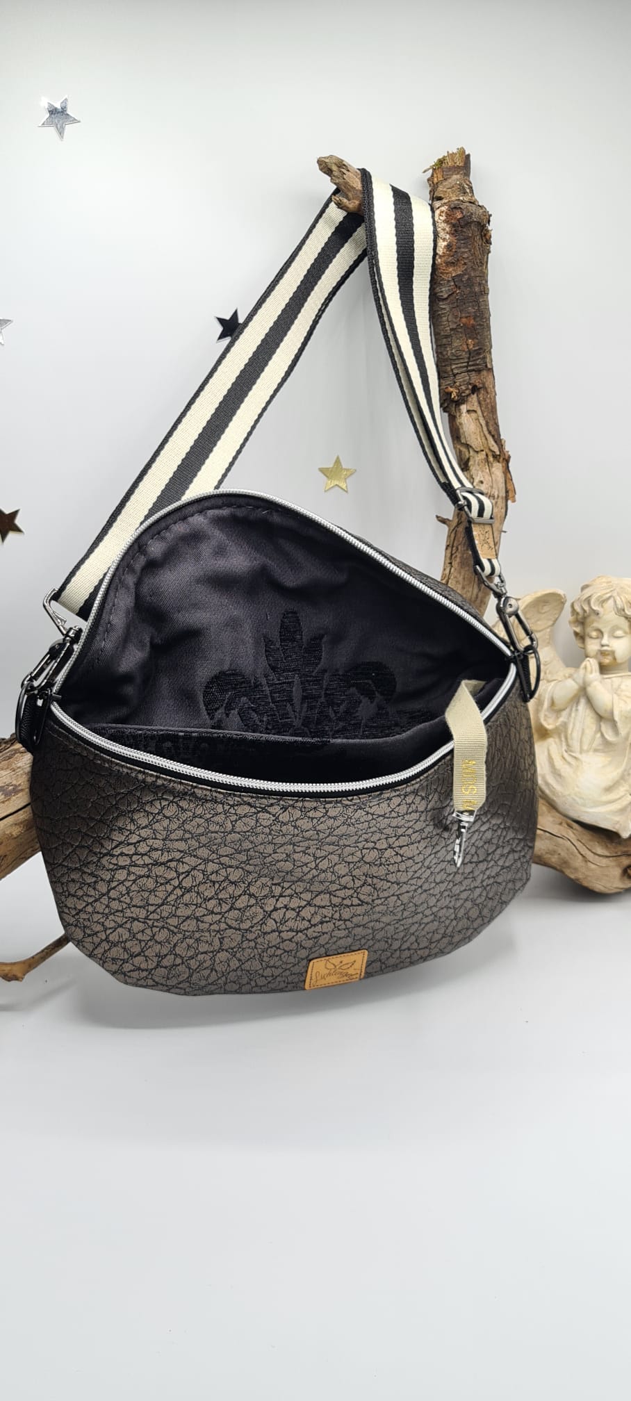 12 Produktbeschreibung Kunstleder altsilber genarbtRV SilberInnenfach geteiltSchlüsselfindergurt schwarz gestreift Anfragen